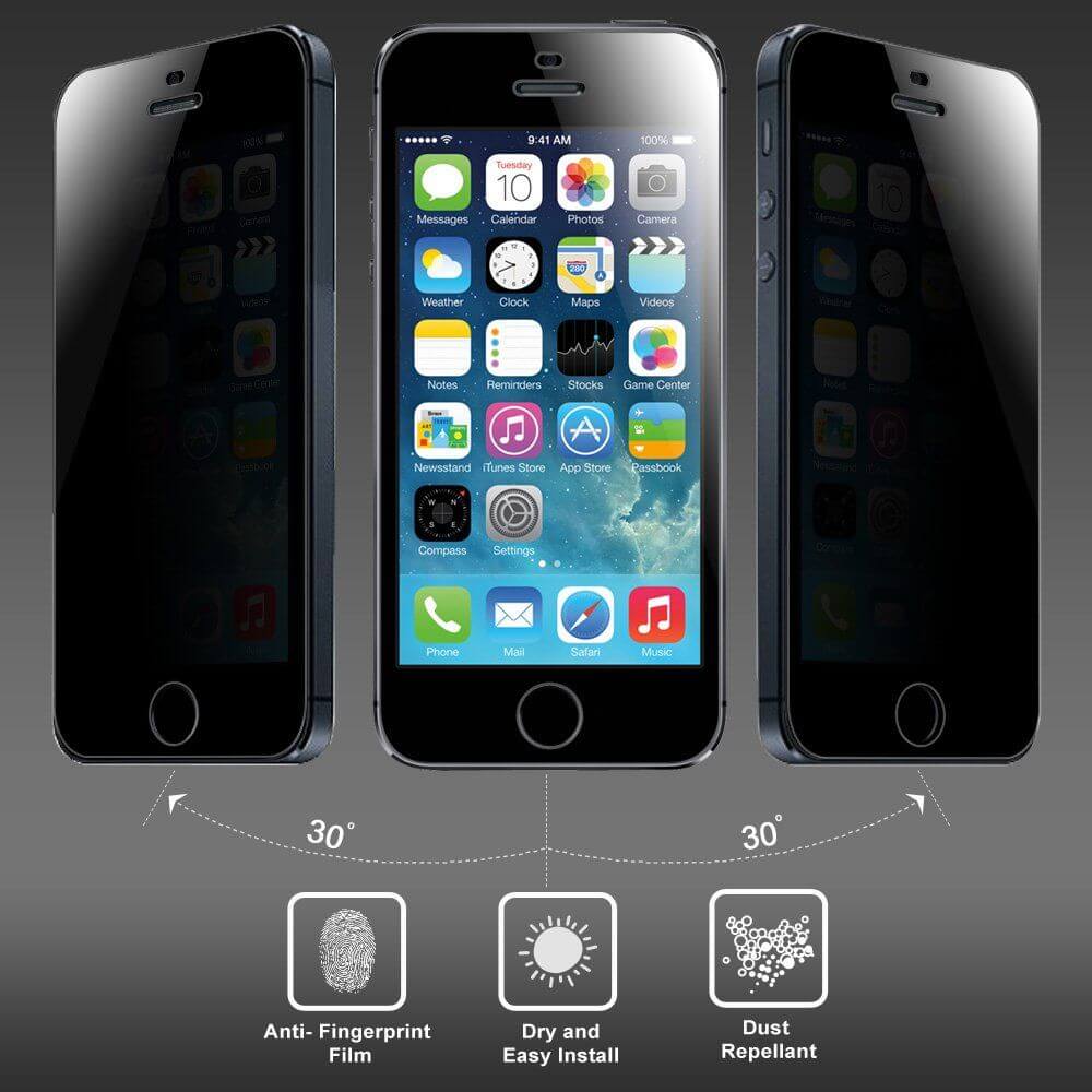 Specifically designed For iPhone 6 / 6 Plus High Quality Privacy Film in Portrait Or landscape Viewing Modes. Screen Is Only Visible To Persons Directly In Front Of Screen Made from the Highest Quality Tempered-Glass with 100% Bubble-Free Adhesives for easy installation and no residue when removed Real Touch Sensitivity for a natural feel that provides flawless touch screen accuracy Protect Your Screen from Scratches and Drops Original 9H Tempered Privacy Glass Screen Protector. Shatter proof glass & Anti Scratch. Surface Water Repellent protector. Sized to specifically fit the mobile device. Removed easily without leaving residue. Easily wipe away marks and fingerprints. No interference with touch-screen responsiveness PRIVACY GLASS The surface has a hardness of 8-9H, three time stronger than regular PET film. Sharp object such as knives and keys will not scratch it. It is oleophobic coating that prevents fingerprints and other contaminant. There is strong silicon adhesive that makes installation easy and attaches the film firmly so as it won’t affect the touch screen’s sensitivity. Prevent strong impact with effective protection. Orignal Technology Tempered Glass. Cleophobic Coated Chemically Treated Glass For Mobile Device Screen. 1. Nanostructured Coating 2. Explosion-prllf Film 3. Silicone Coating 4. Delicate Touch 5. High Transparency 6. Silicone Coating 7. Oleophobic Coating