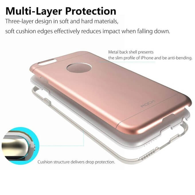 Rock ® Origin Series Metal Protective Shell TPU+Metal Back Cover For iPhone 6 / 6s is made of three high-grade materials including TPU, poly-carbonate and aluminum alloy. Sandwich style structure, perfect combination of softness and hardness, provides superior protection to your iPhone 6. Arc-designed metal back cover presents the elegant beauty of iPhone and has comfortable hand feel. Higher lips around the edges and camera protect the screen and camera lens against damage when falling down. Closed buttons prevent it from dust and lengthen the working time. Features : The arc metal shell is made by top-level precision mold, which presents the original beauty of iPhone and has comfortable handing feeling With Sandwich-type structure design of soft and hard materials, the air cushion edges can effectively reduce impact when falling to provide superior protection to device Its edges are higher than the screen to protect it against damage when falling. The higher camera edges can protect camera against scratch The hollow logo and beveled process around camera make it look exquisite and fashionable and enrich visual effect Closed button prevent key holes from dust and lengthen working timeCompatible Brand: For Apple Brand: Rock Design/Finish: Aluminum Metal Type: Back Phone Case Cover Compatible Model: For iPhone 6 / 6S Material: TPU, polycarbonate and aluminum alloy Color: Gold / Rose gold /grey